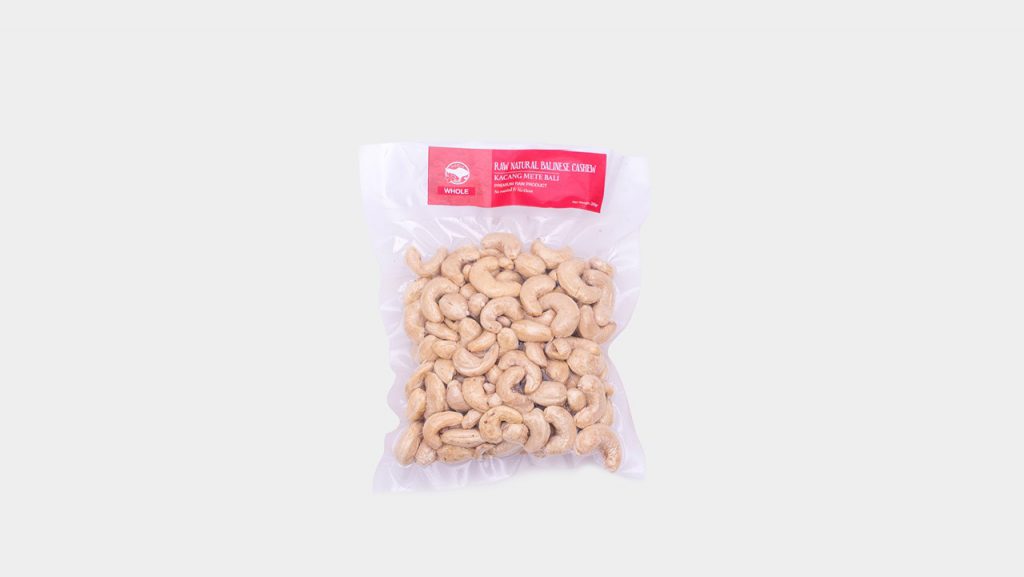 Jambu mete kami bersumber langsung dari petani kecil di sekitar Gunung Agung. Diproses secara tradisional dan alami untuk menjaga keunikan, kualitas dan kesegarannya. Seluruh proses adalah kerja cinta bagi para petani. Konsumsi langsung untuk mencicipi rasa mentah asli mereka, tambahkan ke salad dan kue agar lebih renyah, atau campur untuk membuat susu dan mentega mete yang lezat.